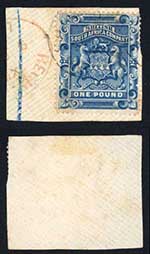 × Rhodesia 1892-5 SG10 1 pound deep blue fine used on piece cat 170 pounds £46.53
