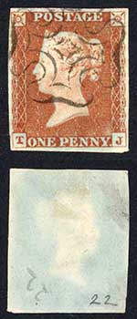 1841 Penny Red (TJ) Plate 22 Four Margins (thin) SUPERB EDINBURGH Cross Cat 120 pounds