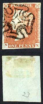1841 Penny Red (NK) Plate 23 Four Margins GREENOCK Cross Cat 250 pounds