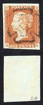 1841 Penny Red (BH) Plate 26 Fine 3 Margins YORK Cross Cat 700 pounds