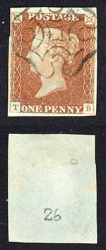 1841 Penny Red (TB) Plate 26 Fine Four Margins EDINBURGH Cross Cat 120 pounds