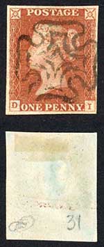 1841 Penny Red (FL) Plate 31 Fine Four Margins Cat 60 pounds