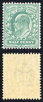 KEVII 1/2d Blue-green C4 Co-extensive Rule Perf Type V1 M/M