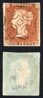 1842 Penny Red (BH) Plate 19 Four Margins SUPERB EDINBURGH Cross Cat 120 pounds