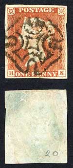 1841 Penny Red (HE) Plate 20 Four Margins STIRLING Cross Cat 150 pounds