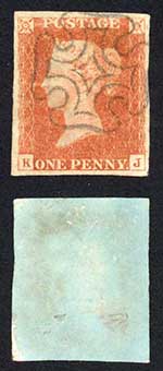 1841 Penny Red (FJ) Plate 24 Fine Four Margins J Flaw Cat 70 pounds