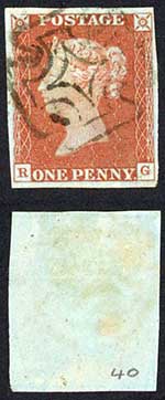 1841 Penny Red (RG) Plate 40 Fine Four Margins DUBLIN Cross Cat 140+ pounds