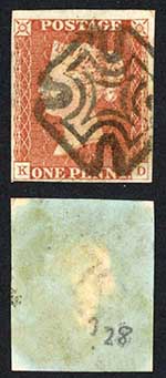 1841 Penny Red (TK) Plate 13 SOLID Centre Cross