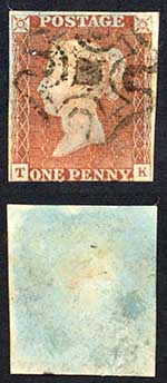 1841 Penny Red (TK) Plate 13 SOLID Centre Cross
