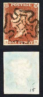1841 Penny Red (RH) Plate 15 Fine Four Margins Cat 80 pounds