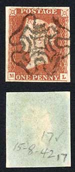 1841 Penny Red (ML) Plate 17 Four Margins EDINBURGH Cross Cat 140 pounds