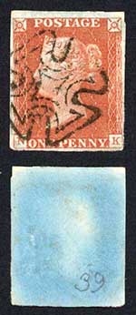1841 Penny Red (NA) Plate 30 Fine Four Margins DOT IN CROSS Cat 65 pounds