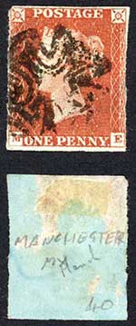 1841 Penny Red (ME) Plate 40 (THIN) MANCHESTER CROSS Cat 350 pounds