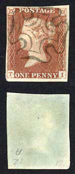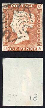 1841 Penny Red (HA) Plate 18 Fine Four Margins WORN PLATE Cat 140 pounds