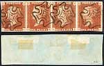 1841 Penny Red (OG/OJ) Plate 14 Four Margins STRIP Cat 650+++ pounds
