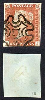 1841 Penny Red (QJ) Plate 13 Fine Four Margins Cat 175 pounds