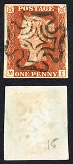 1841 Penny Red (MI) Plate 15 Fine Four Margins Cat 80 pounds