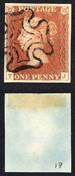 1841 Penny Red (TJ) Plate 17 Fine Four Margins SUPERB Cross Cat 140 pounds