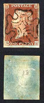 1840 2d Blue (DA) Plate 1 Red Cross Side Marginal
