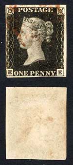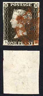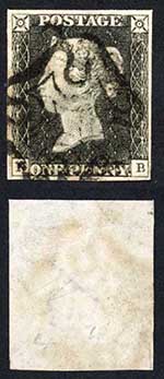Penny Black (LB) Plate 6 Four Margins (close) light thin