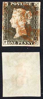 Penny Black (HA) Plate 6 Two Large Margins with an Painted in 6 in cross