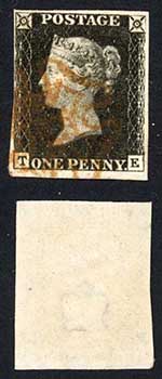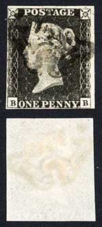 Penny Black (HA) Plate 6 Two Large Margins with an Painted in 6 in cross