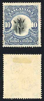 Tanganyika SG87a 10/- Wmk Sideways Light CDS and part crayon mark