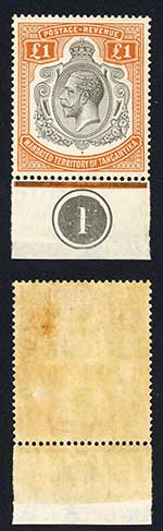 Tanganyika SG107 One Pound Brown-orange Plate example M/M Cat 275+ pounds