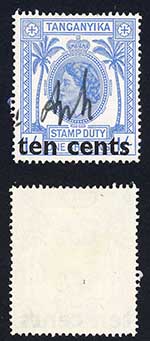 Tanganyika BF16 10c on 1/- Provisional surcharge