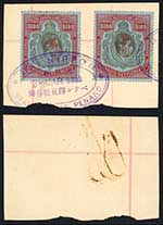 Penang Japanese Occupation 100 Dollar Revenue x 2 BF122 on Piece RARE