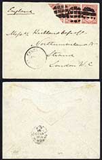 Bermuda KFVI 1d 1 1/2d x 2 and 6d Plate number examples on a Cover to the UK