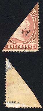Hong Kong QV 48c Rose PAIR with B62 cancel in Blue LOOKS FAKE