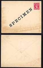 Falkland Is Heijtz E1 QV 1d Envelope opt SPECIMEN (stained)