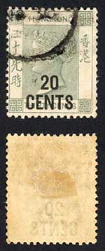 Hong Kong SG45a 20c on 30c Grey Green Cat 170 pounds