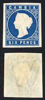 Gambia SG 8 6d Deep Blue wmk with a Large W M/M Cat 350++ pounds