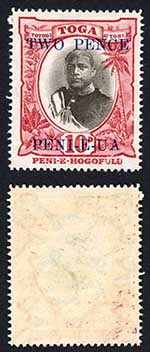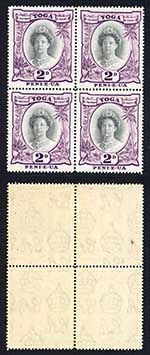 Tonga SG76 2d die 2 wmk Script Plate block (2 x U/M) Cat 22 pounds
