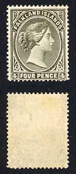 Falkland Is SG6 4d Grey Black Wmk CA upright Part Gum Cat 850