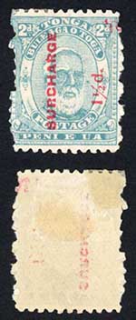 Tonga SG30e 1d on 2 1/2d vermilion Error 7 for 1 in 1/2 M/M Cat 300 pounds