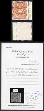 Rhodesia SG13 1892 TEN POUNDS MINT (no gum) Cat 3500 pounds BPA Cert