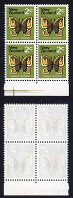 New Zealand SG1009 2c No Wmk Dropped wings U/M Block
