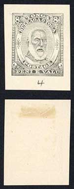 Tonga 1892 (Proof) 8d King George Tubou I imperf single in black