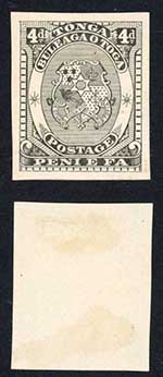 Tonga 1892 (Proof) 4d Arms of Tonga imperf single in black