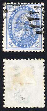 Tonga SG3 6d Blue Perf 11.5 All-round Stated to be Ex JH Abbott Harmers 1968