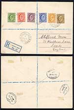 Falkland Is 1912 registered envelope to Leeds bearing SG43/8 1/2d to 1/-