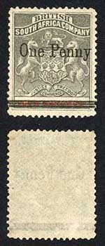 Rhodesia SG51 1896 Matabeleland Rebellion 1d on 3d provisional M/M Cat 650