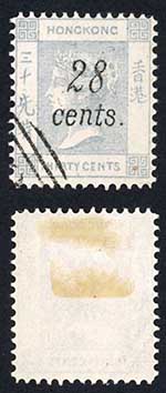 Hong Kong QV 28c on 30c Grey Spiro Reproduction attractive