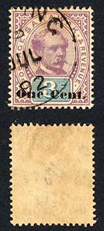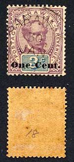 Sarawak SG22 1c on 3c purple and blue (1st type) Inverted N in One Cat 50 pounds