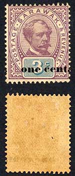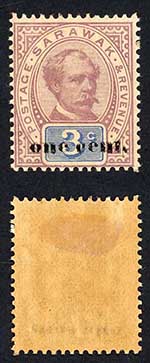 Sarawak SG27 1c on 3c Brown/yellow Mint (no gum as normal) Cat 10 pounds