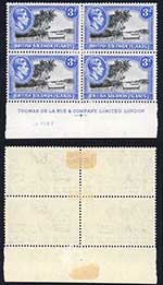 Solomon Is SG66 4 1/2d Imprint Block U/M (toned gum) Cat 48 pounds