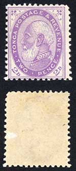 Tonga SG65 2d on 7 1/2d U/M Cat 42 pounds